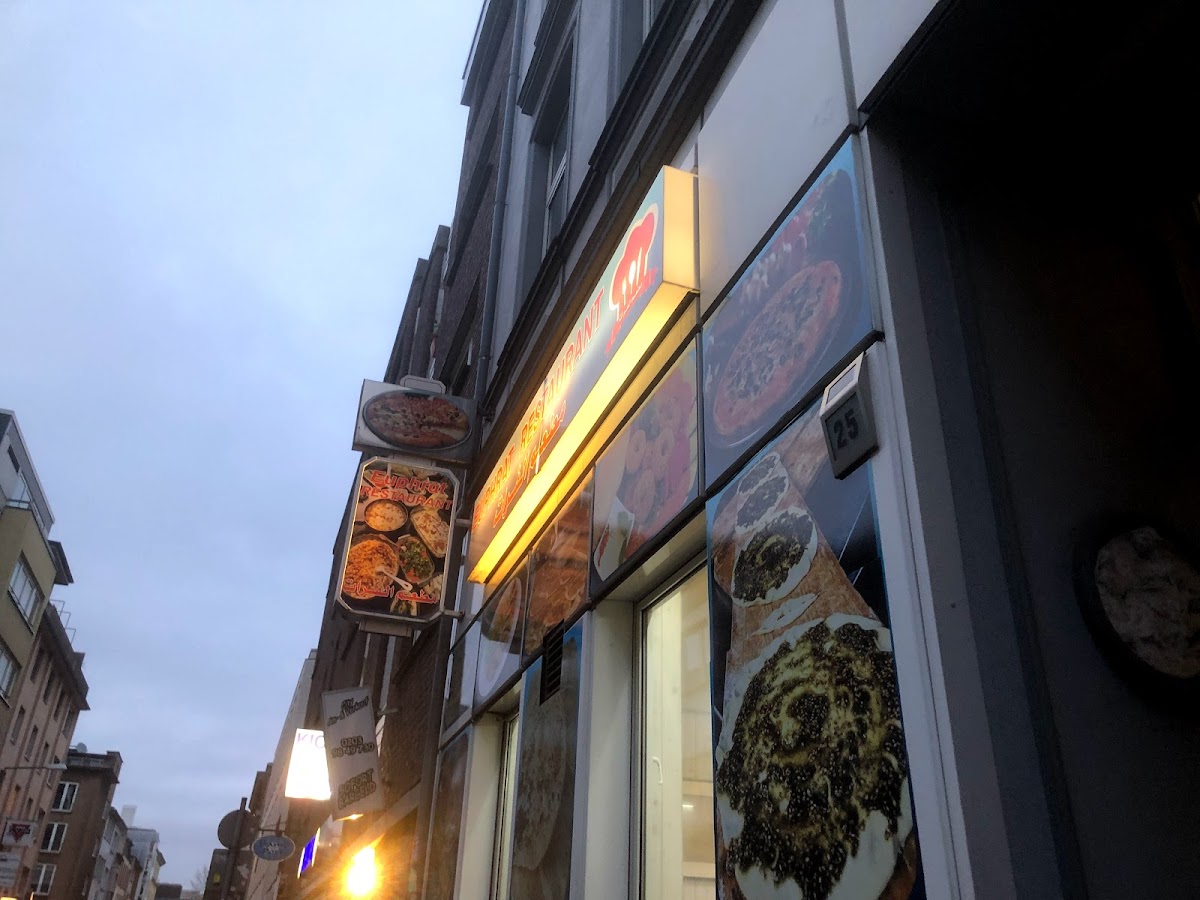 Typical Syrian and eastern food (shawrma) , the food is delicious and the service is perfect , the restaurant works until 11:00 pm which is kind of late in compare to other restaurants in Duisburg Stadtmitte