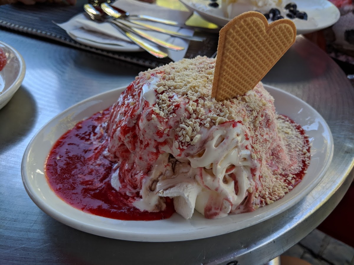 I went for spaghetti ice, a German classic that I absolutely love. The portion was so huge that I could barely finish it, but that was nothing compared to my mum's giant plate of yogurt ice cream.