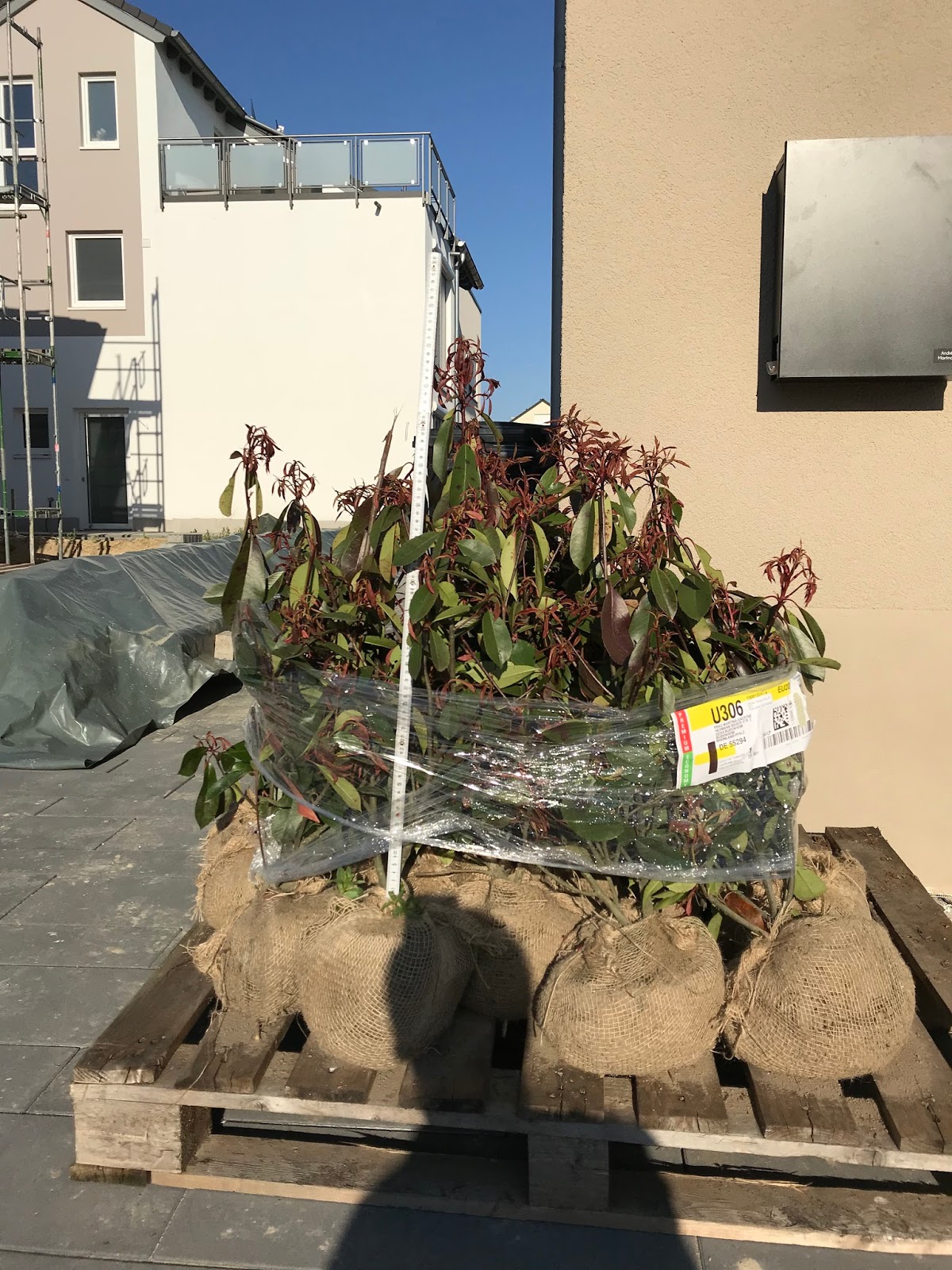 Am selben Abend stand dann aber eine Palette mit 17 Pflanzen in der Einfahrt. Wir haben im Vorfeld weder eine Versandbestätigung per Mail noch einen Anruf der Spedition bekommen und deren System wusste scheinbar auch nicht, dass hier Ware unterwegs ist...