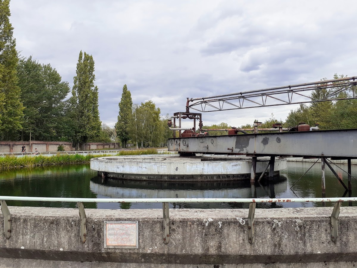 Two huge water bassins used for cooling. Now, rust and waterplants are slowly taking over. Maybe put some waterlilies in the bassins, and let wildlife also get in there.