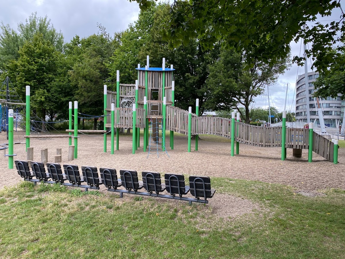 Schöner Spielplatz. Sauber und sehr offen gestaltet. Wenn man im Hafen spazieren geht haben so die Kids auch ein schönes Ziel.