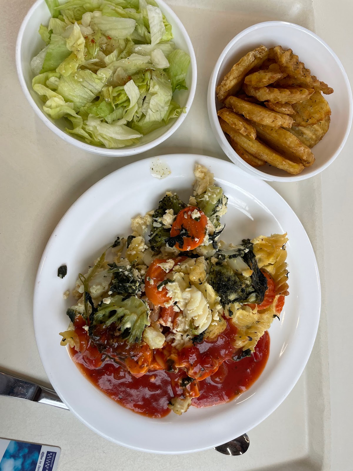 It's a Mensa. They always have a vegan option, which made me vegan, for 1 meal a day at least.