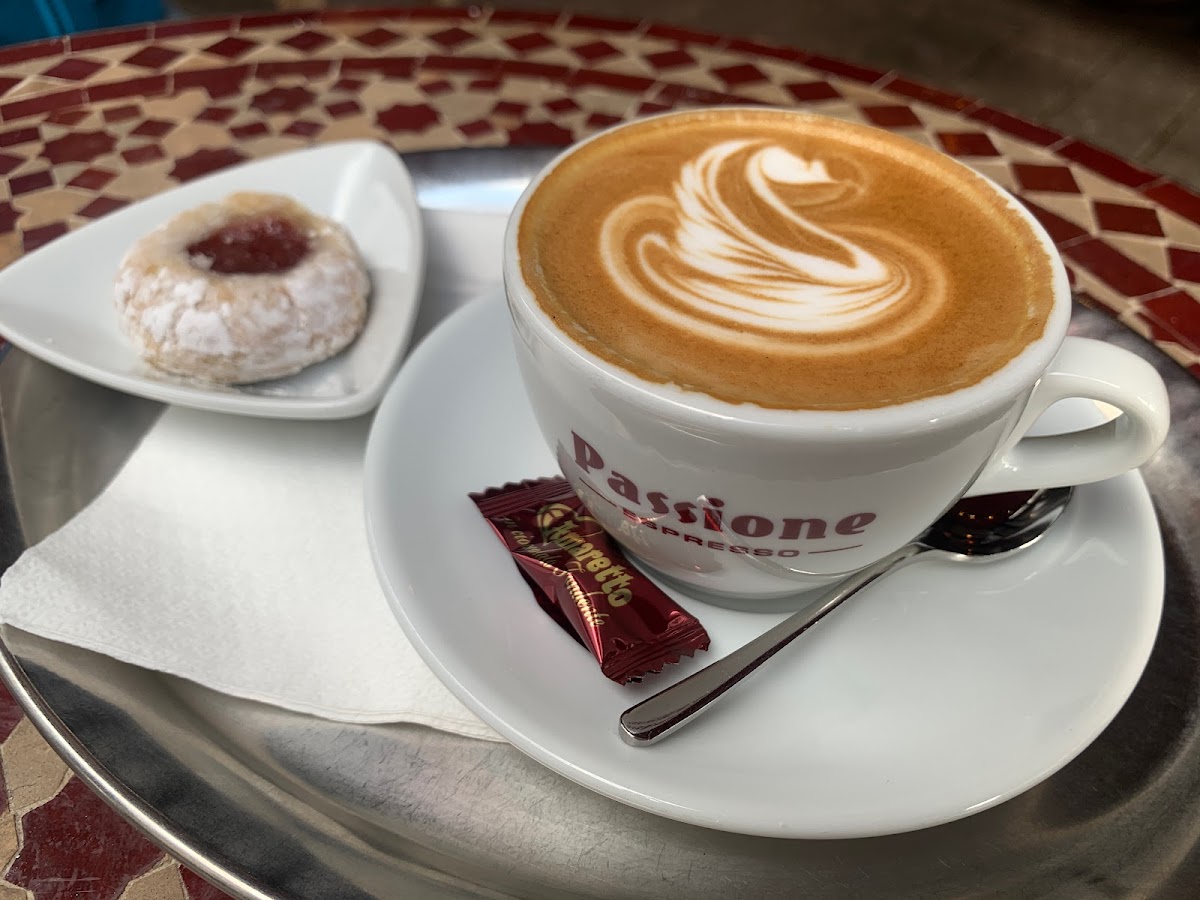 However, the cappuccino here for small 2.7€ is pretty good with nice latte art. The snack is okay.