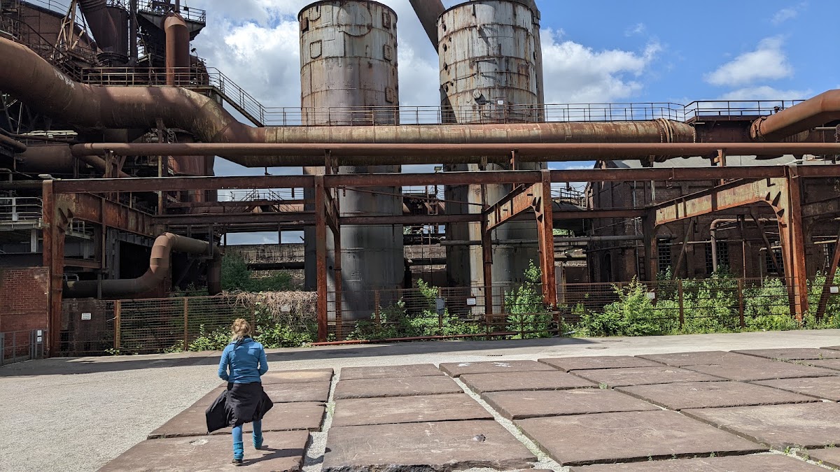 (Translated by Google) The Piazza Metallica is located between Schalthaus Ost and Gießhalle 1. The square is another example of the successful transformation of the former iron and steel works into a landscape park. Forty-nine square steel plates in a 7 x 7 arrangement form the center of the plaza. The steel plates were formerly used in the manganese iron ore foundry to line the pouring bed. Today they are reminiscent of the former location of heavy industry in Meiderich and at the same time form the 'focus' of the piazza. In my opinion a very appealing combination of old and new.
