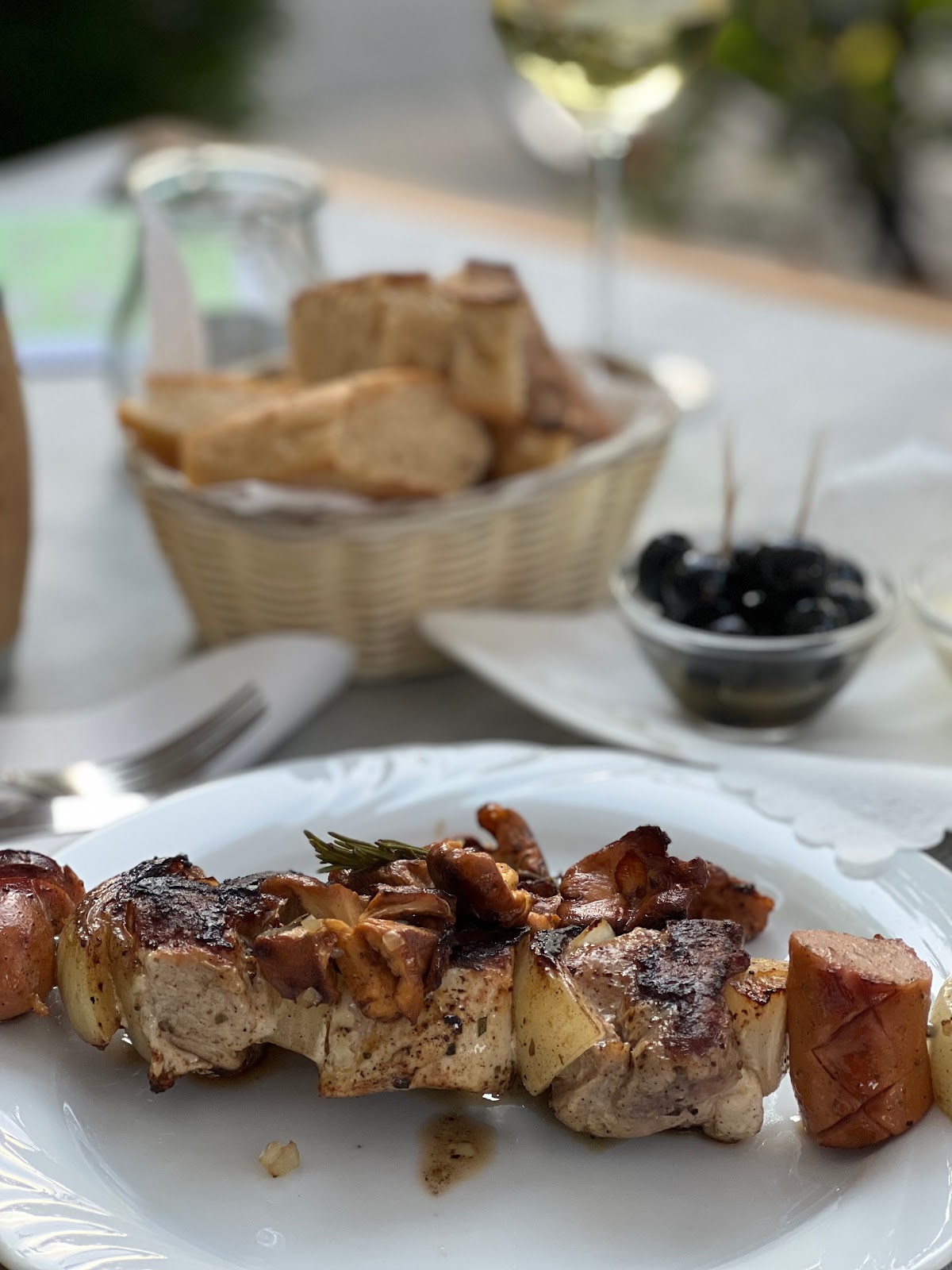 We sat in the beautifully designed terrace area and ate different dishes. Appetizer, main course and dessert.