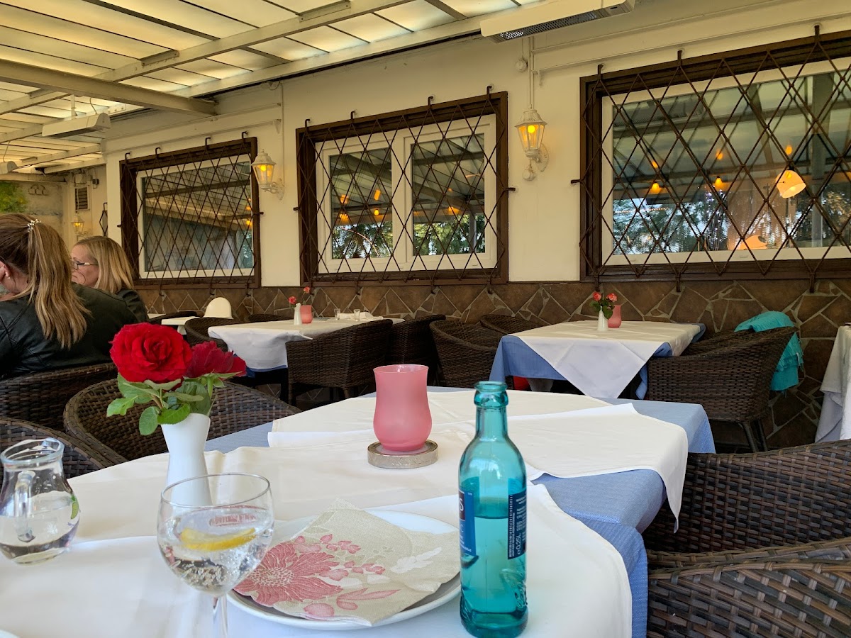 Das Ambiente ist rustikal, dabei gemütlich und sauber, besonderen Reiz hat für uns die Terrasse, die über Deckenheizlüfter und öffenbare Verglasung verfügt.