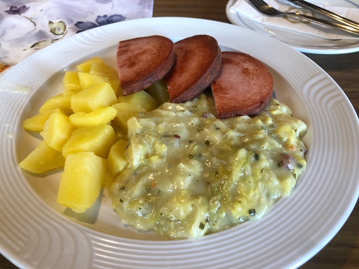 (Translated by Google) I've known the restaurant for at least 10 years and always stood in front of a locked door when I came by here on my bike and always heard that there is a very delicious lunch here! Unfortunately, the kitchen closes at 1 p.m. and the restaurant opens again at 1.30 p.m. at 6 p.m.! Now it finally worked. Called in the morning, you have to pre-order lunch by phone, unfortunately, you can’t see it on the internet, a pity, I probably got the last portion by asking! Arrival friendly reception ambience rustic in the 70's style but comfortable! Pils came quickly and less than 5 minutes the lunch dish today Chinese cabbage dressed like savoy never eaten before and just awesome with very tasty potatoes and fried meat sausage large slices like cold cuts all together really tasty and a good portion! Wonderful home cooking would have eaten up a 2 plate! I have to come by in the evening, there should also be very good steaks! Greetings from Moers until next time!