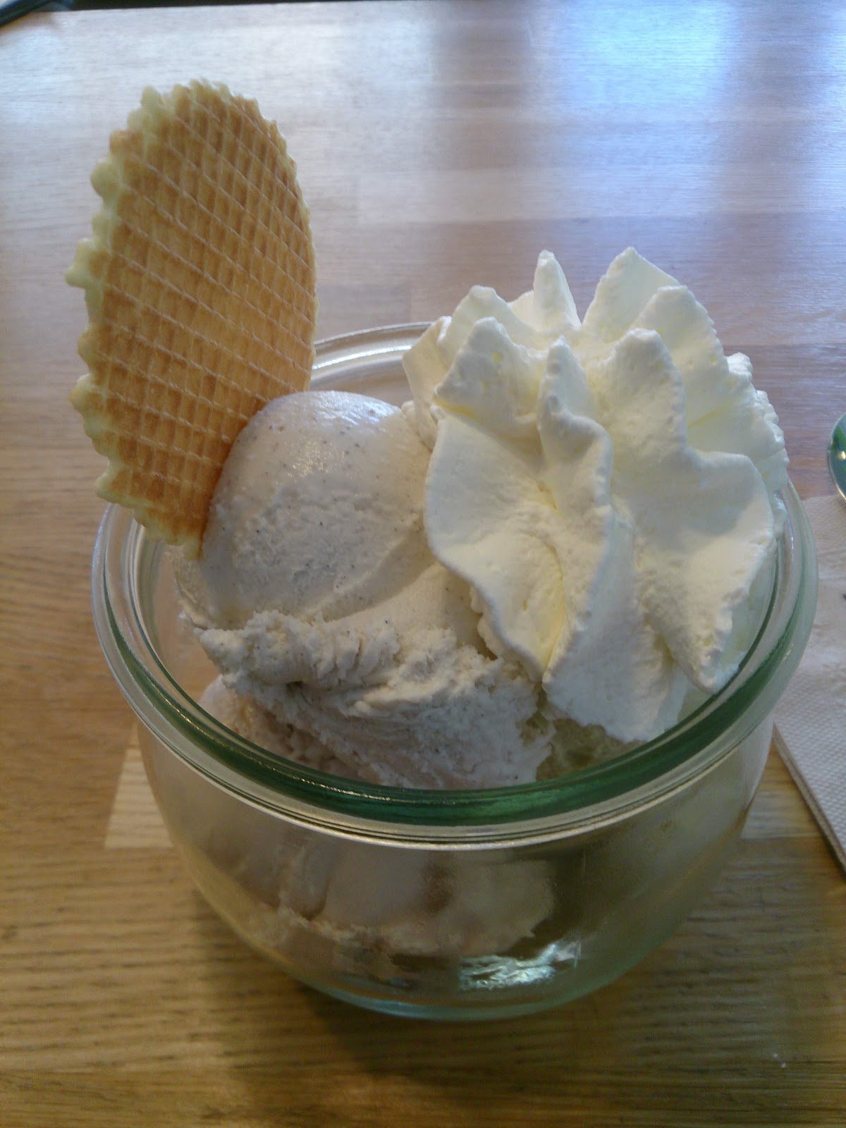 Übrigens viele Zutaten aus der Region und was ich den Oberknaller finde: es gibt Pfandgläser in denen man sein Eis mitnehmen kann und dazu essbare Löffel die den ganzen Eisbecher lang durchhalten.