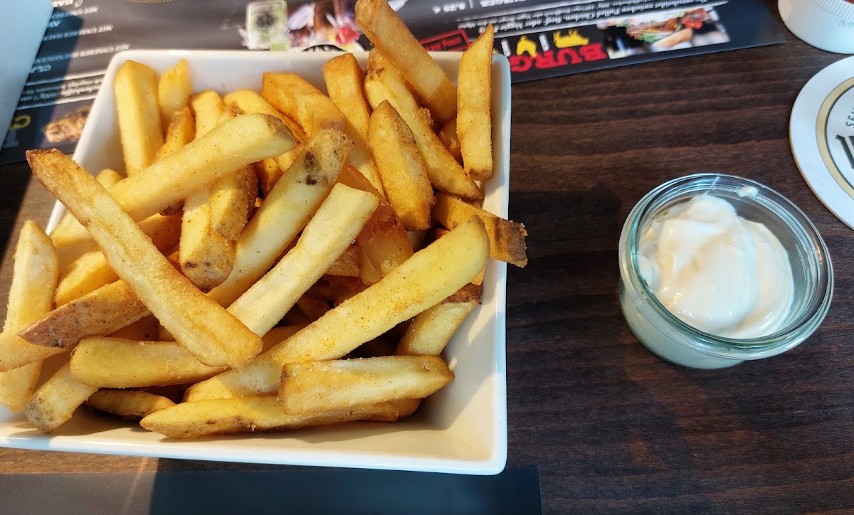 Dort angekommen konnten wir uns aussuchen welchen Tisch, weil wir direkt zum Öffnen dort waren. Personal sehr nett empfangen, Gutschein problemlos angenommen und Sachen zu bestellen wie Pommes war kein Problem.