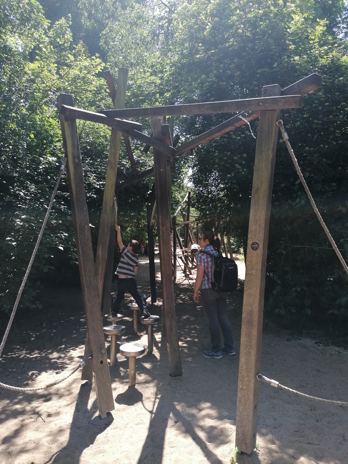 Etwas versteckter Spielplatz zwischen den Bäumen. Ist von Schwierigkeit auch für etwas ältere Kinder ab acht gedacht.
