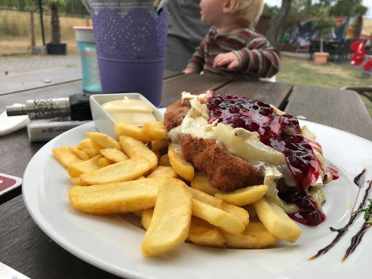 Came here for a special dinner occasion Thursday 28.07.22. Great atmosphere, you can dine in or out. We were inside in the Wintergarten. Lots of choices if you eat meat or fish. Menu not great for vegetarians, only two options. I had the pflammekuchen with spinach and cheese, it was very filling and a bit rich, could not finish it. Others said their food was lovely. Used to be a railway station, the railway line is still operating, so don't get a fright when the trains come by! Loved the coziness of the place, we were there early evening, but I'd say in the night time with the lanterns lit, it would be quite magical.