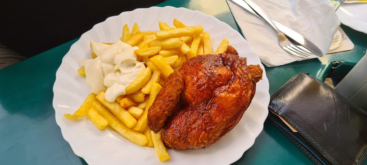(Translated by Google) Half the rooster is delicious. The fries are super fried and the side salad is delicious.