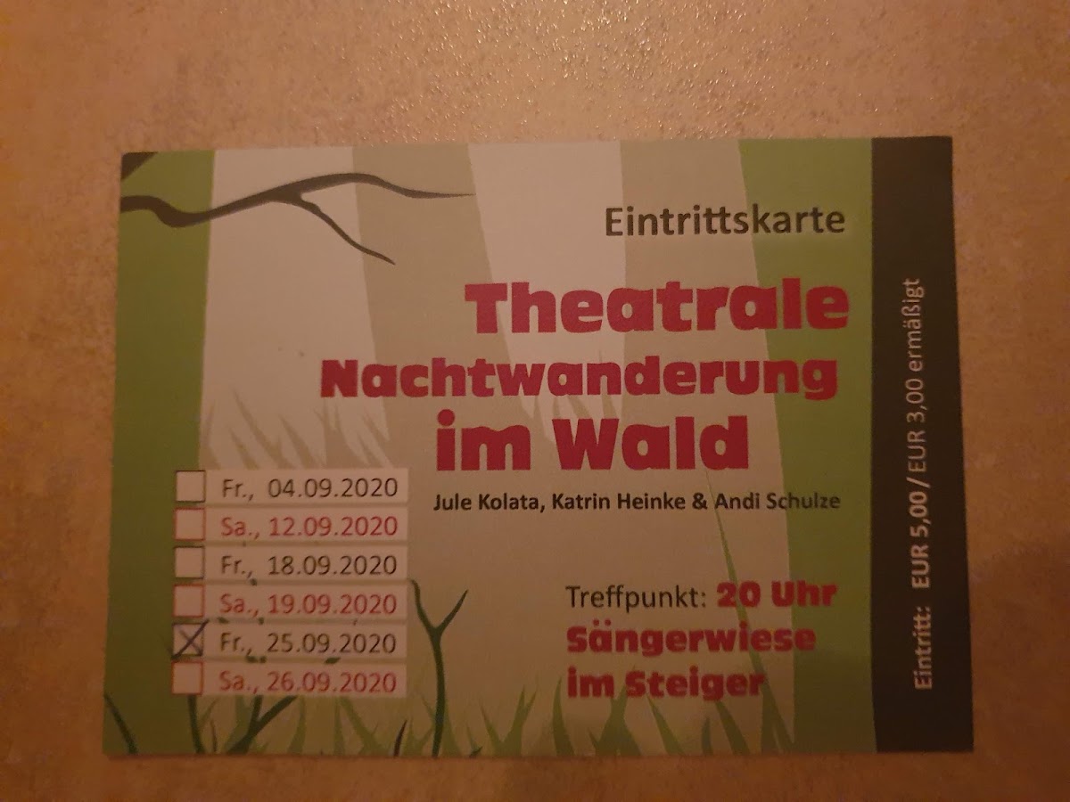 Haben an der "Theatralen Nachtwanderung im Wald" teilgenommen. Entgegen meinen Befürchtungen war ich mehr als angenehm überrascht. Die ca. zwei Stunden gemütliche Wanderung durch den Steiger waren nicht nur lehrreich für die zahlreichen Kinder, sondern auch auch die größeren Kinder konnten durchaus etwas Wissen mitnehmen. Für Kurzweil und lustige, sowie lehrreiche Einlagen sorgte "Waldschrat Hubertus" mit seinen Hexen und Elfen.