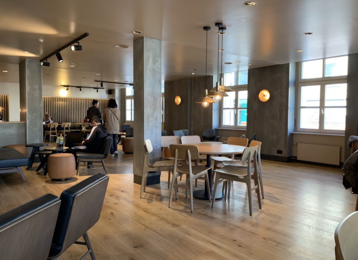 Service was unenthusiastic, at best. Like most coffee shops in Europe, it's not possible to get an actual Mocha here, which is still incredibly annoying. Bathrooms are locked and require a code/purchase. Otherwise fine.