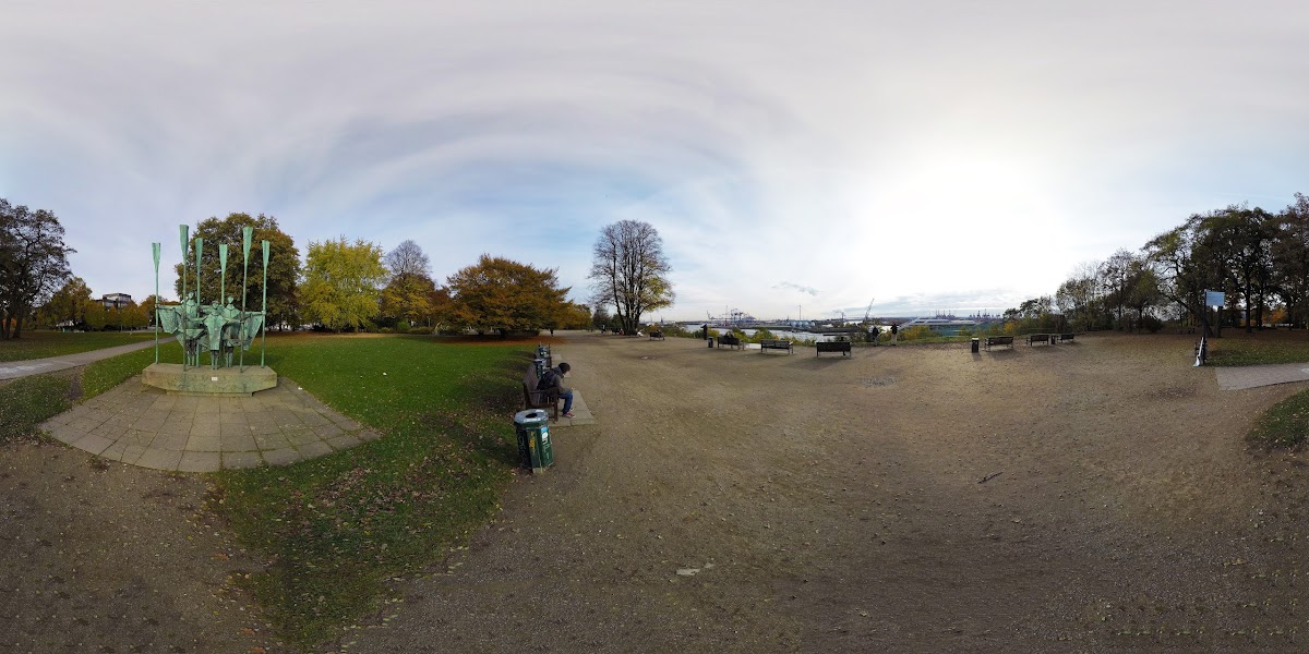 You can easely watch big cargo boats and cruise ships enter the port of Hambourg, nice camera shooting spot. Plus, there is a bigger Parc with a path going down to old public ship museum port.