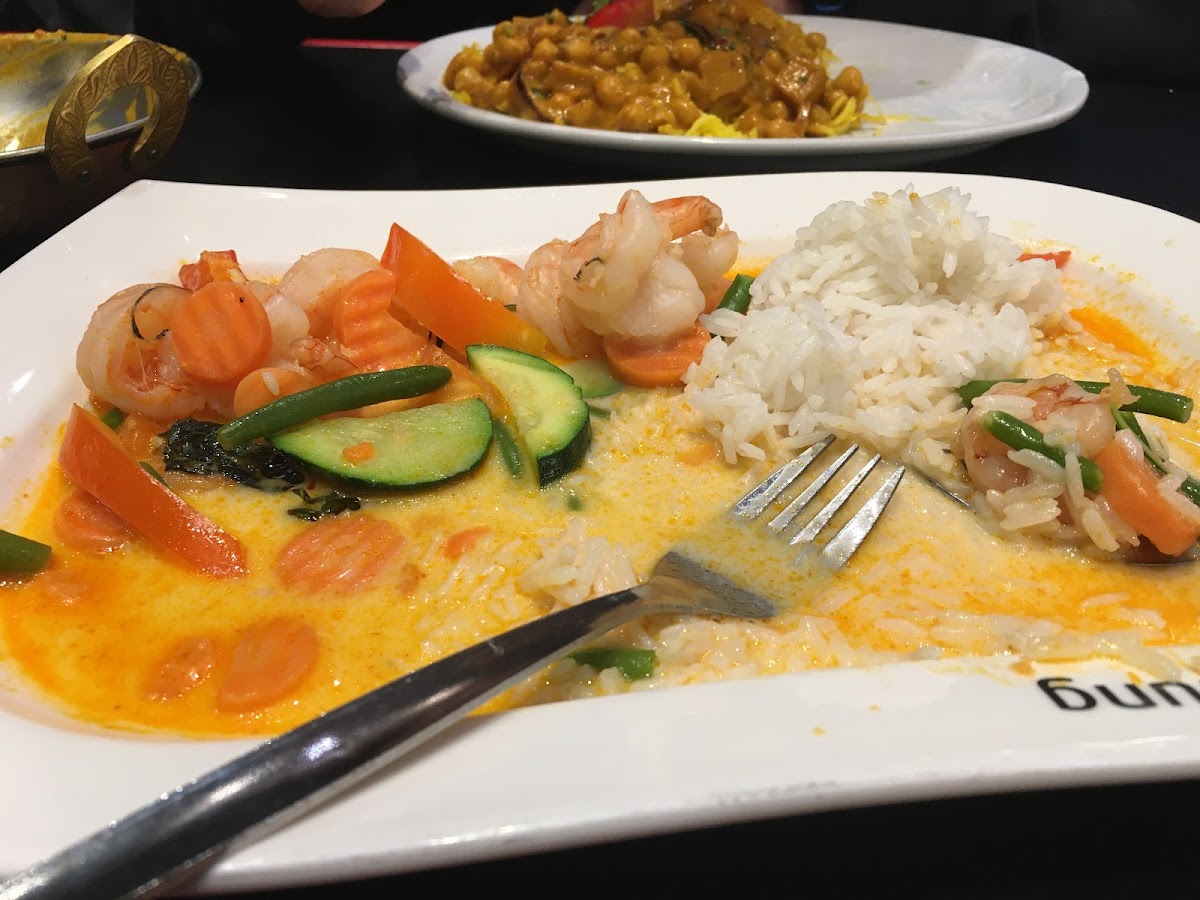 Katastrophe. Put some more effort. Curry is not that difficult. this is basically a coconut soup.. maybe they have way too much coconut milk so they will try to waste it whenever they can. I am so happy they didn't give me a lot rice, and when I finished the rice and shrimp, I was also very happy cause I don't need to put this "curry" into my mouth again. Hit me up if you guys need a class on how to make a quick delicious curry.