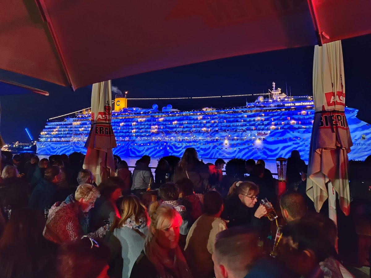 Me and some friends visited this fine establishment some years back on our tour of hamburg and let me tell you what a night it was. We started of with some astras and made some German friends. The dj was on fire and on time one of the boats got up close and everyone waved and had a real moment. Then when the boat slowly is leaving our side the dj comes up with the brilliant idea of playing my heart will go on while everyone at the bar and on the boat waves goodbye to each other while they float away into the sunset. After that the dj played the hit song from 2001, zuperjeilezick, and us being Swedish understood nicht while everyone was singing along. Eventually we started singing along as evening faded into night. The next day while hungover on our way back to gloomy Sweden we googled the song and as we translated the words with tears streaming down our faces we understood that we indeed had had a superjeilezick