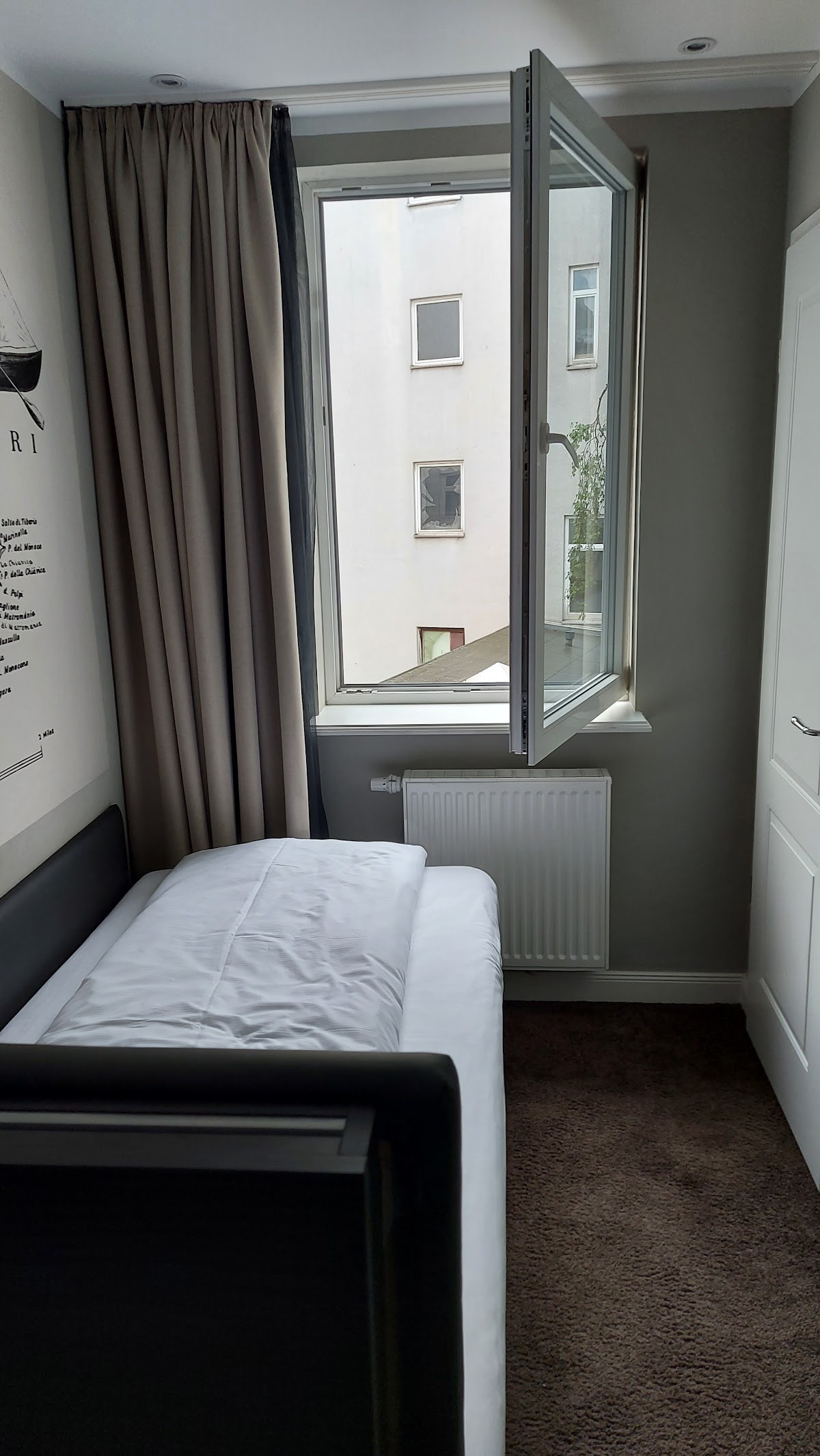 I enjoyed my stay here. It was a bit hard initially to find the right entrance to check in. It is not the same place. The location is a small entrance between the Italian restaurant, but check in is a bit further to the right. The room was clean and looked and smelt properly disinfected before I could check in. The room was relatively small, but the bed and Pillows were so very comfortable. The shower was great and entire place was very clean. I would recommend this place. Lots of good restaurants and the main train station opposite.