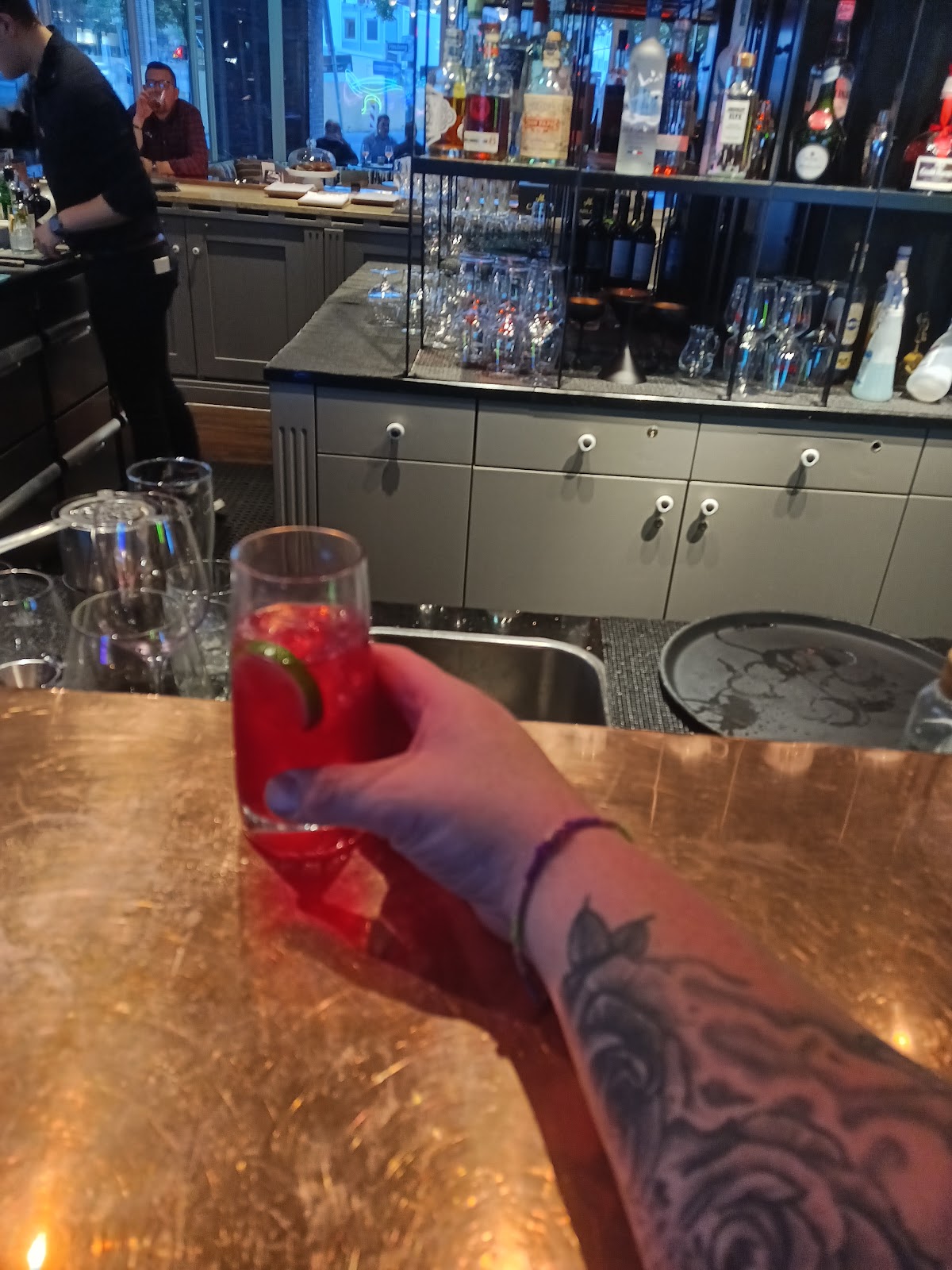 Best Hotel/Restaurant/Bar staff in Hamburg. Knowledge of alchemy is amazing. Also tje chefs are nothing less than perfect. Will make you whatever you desire if available to make. Have hade many tester nights when Toby, Paula, or Miguel thought of their own mix of madness or pure geniuses. They treat you like family. Thursdays is live music after worm from 18uhr to 20uhr various musicians set the mood. This is my companies preferred hotel and we have not been disappointed at all. The manager Uwa is great as well. Don't pass them up when in town. Nice outdoor seating as well. In city center.