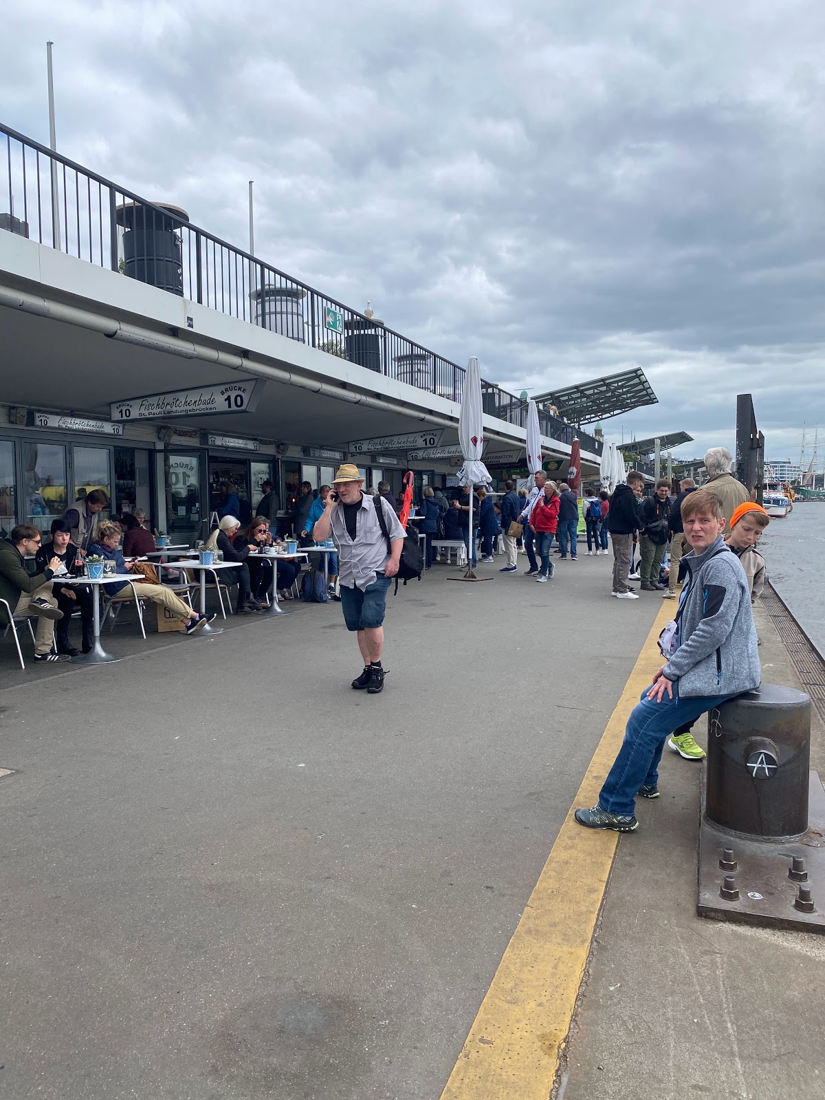 In case you prefer a more intimate atmosphere, there are benches u0026 space on the upper floor, where you can also enjoy the view over the river u0026 the port, along your Fischbrötchen. ;)