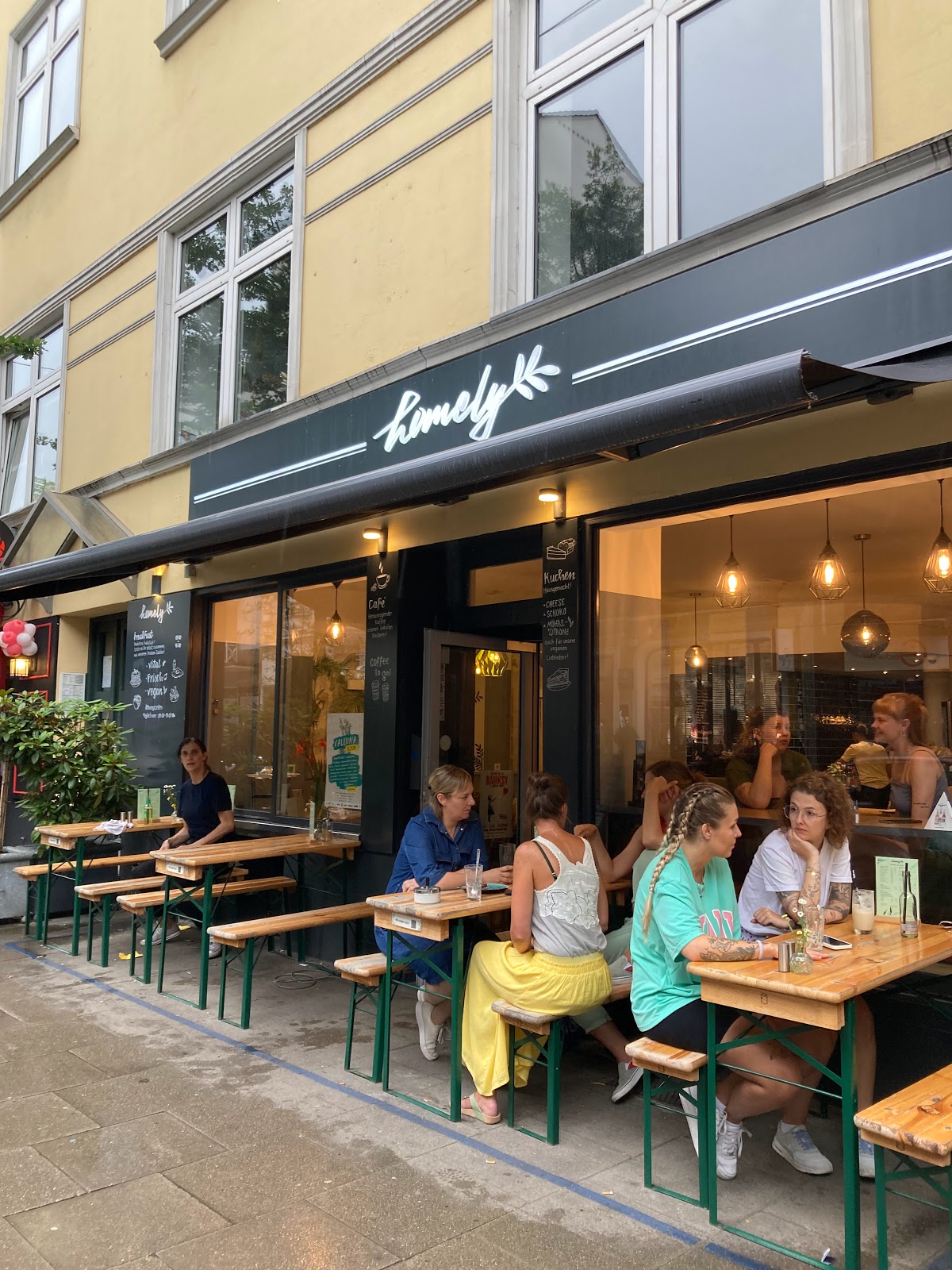 Das Café war sehr klein. Es befand sich neben uns nur eine kleine Gruppe Frauen in dem Café, aber die Gespräche hallten laut durch den ganzen Raum. Auch die Kühlschränke innen haben Lärm gemacht. Das war ungemütlich, deshalb haben wir uns nach draußen gesetzt. Dort wurden wir von Anwohnern in den nebenliegenden Häusern beobachtet. Naja, es ist wie es ist.