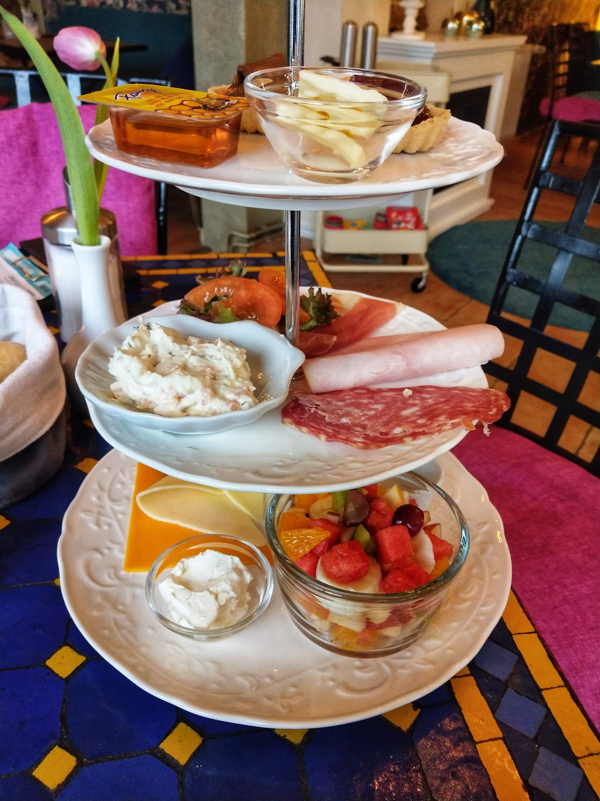 Tasty breakfast with many varieties and extras.