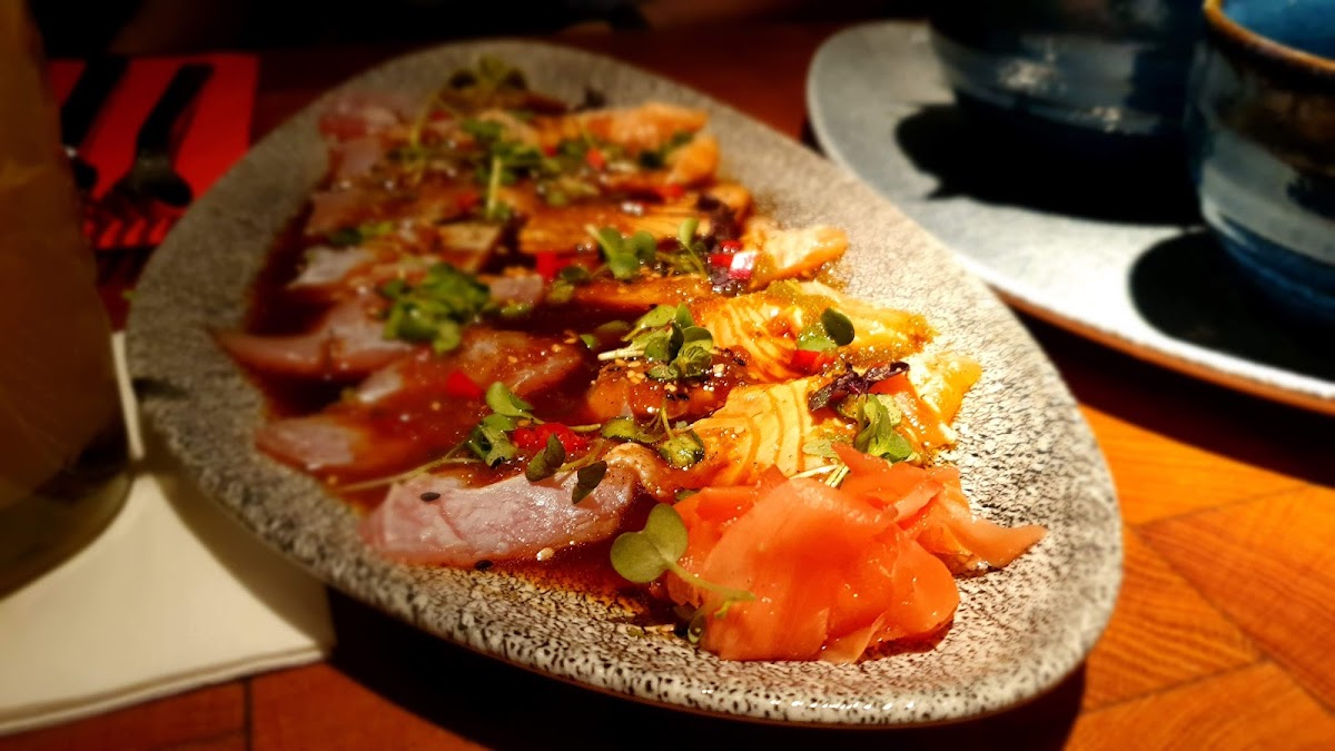 Especially nice was the tuna and salmon sashimi "New Style" (see picture).