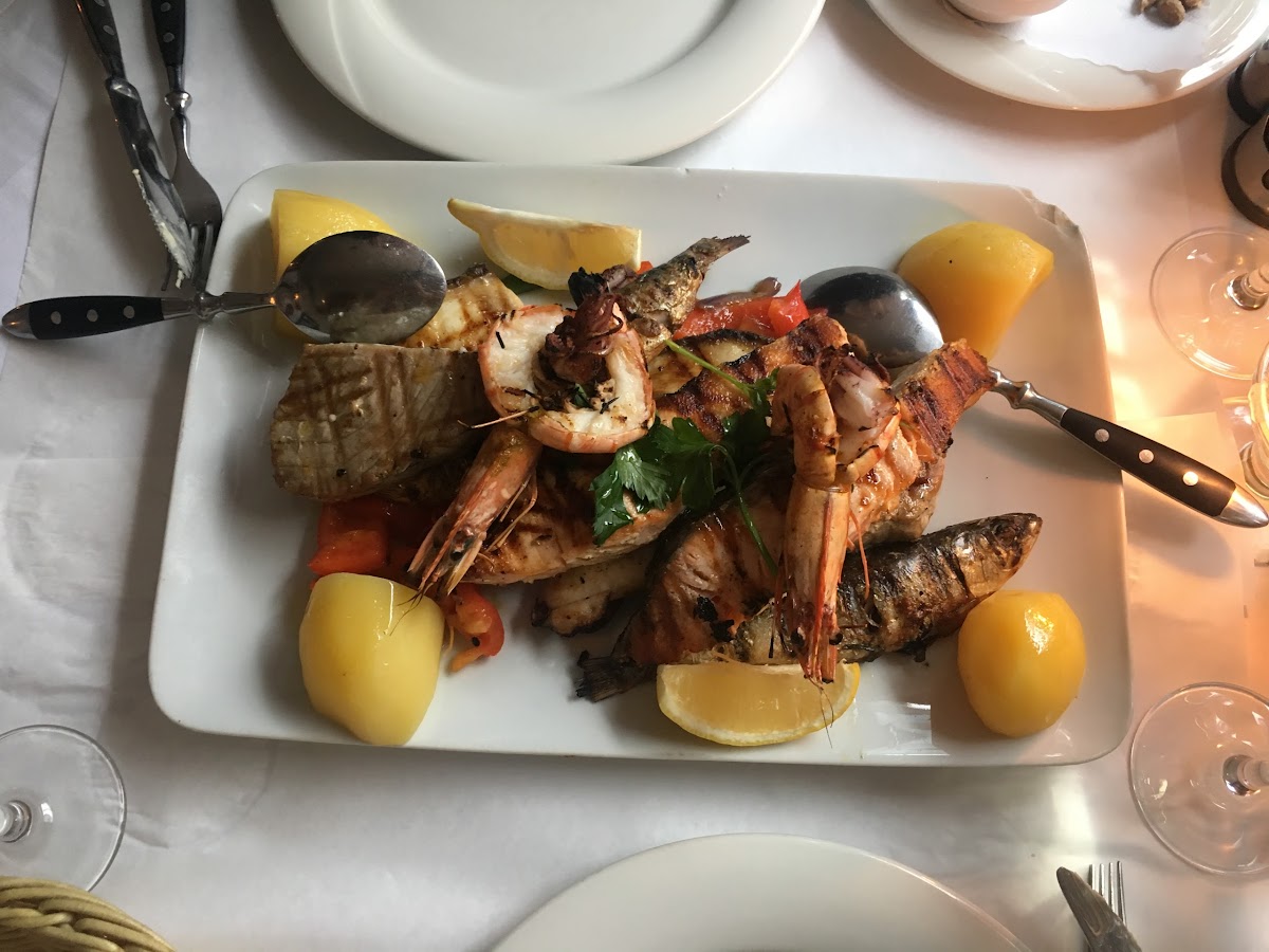 We got a fish plate for two. The plate consists of tuna steak, salmon, calamari, shrimp, sardines, white fish perfectly fried at the open fire.