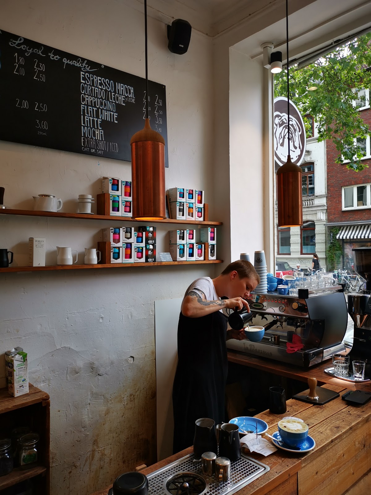 ???? % love for this golden gem close to Altona station. The staff is very friendly and so far this has been the best coffee place I have visited within hamburg. Coffee is not served boiling hot, it is rightly served. The turmeric latte is pretty good as well.