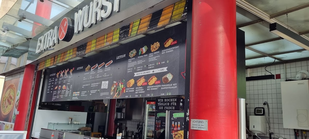 (Translated by Google) It looks delicious and tempting. But I hold myself back because I often compare the prices. And the value for money just doesn't fit. The curry sausage with fries costs €6.90 here. The quality, prices and taste could be better. That's around €1.50 or one drink too much for me. In the best location on Jungfernstieg I get the complete menu, with a drink if it is of very good quality. On the plus side, ketchup and mayonnaise are free. There are still communication problems. The curry sauce is offered hot or not so hot, which is probably meant without curry...... I didn't want hot but with curry, which I didn't get.