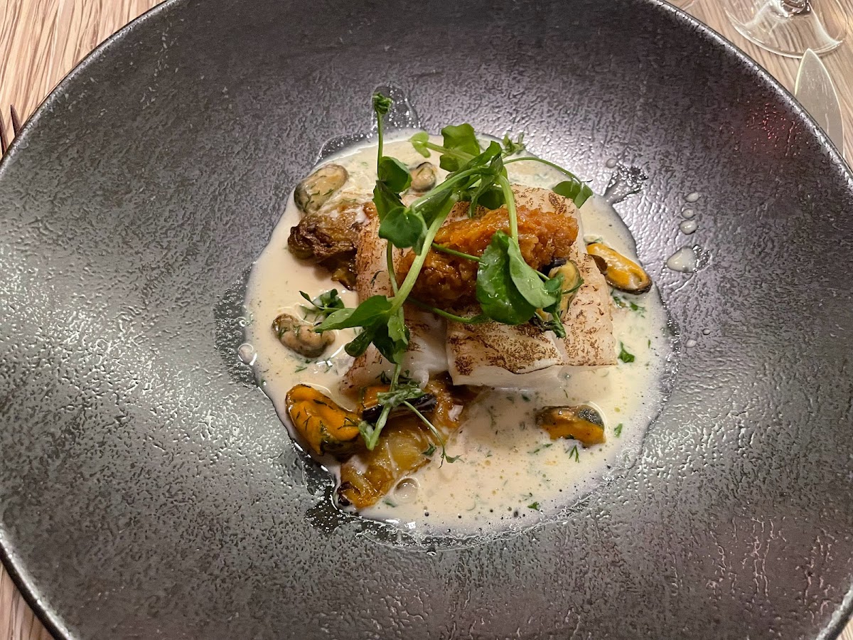 Schon weitaus besseren Salat gegessen. Menge zu gering und Dressing irgendetwas Wässriges. Gutes Brot mit zwei Sorten Salz und Butter kam wie ein amuse geule auf den Tisch.. Das Gemüse und die Kartoffelwürfelchen unter dem guten Kabeljau in sehr übersichtlicher Menge recht geschmacksneutral. Drei winzige Heringsfilets als Vorspeise wurden als Strömling angepriesen mit winzigen Apfel Scheibchen, die meiner Frau nicht mundeten. Wenigstens der teure offene Riesling war gut. Na, ja, musste mal sein. beim ersten Besuch eines Konzerts in der Elbphilharmonie. Besser nicht wieder.. Ach, ja-die Bedienung war nett und flott.