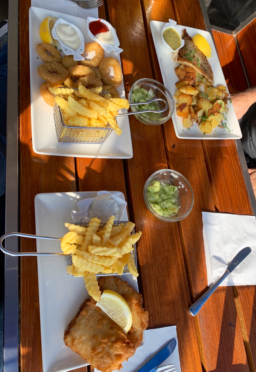 We loved the place when we first went there in 2015. Unfortunately our 2nd visit turned into a catastrophe. I wanted to use the toilet after we bought 4 Fischbrötchen from the buffet with my family. The rudest waiter I've ever seen who didn't allow me to use the toilet, also said that I had to go outside, pushing by my arms and shouting at me in front of other people. I was surprised at what happened. He argued first with me and then with my husband, and we had tension in the family because of him. It was a terrible moment for me, I have never encountered anything like this in my life. You should not work with such rude service employees. Definitely a big disappointment. Even 1 star is too much. NEVER AGAIN!
