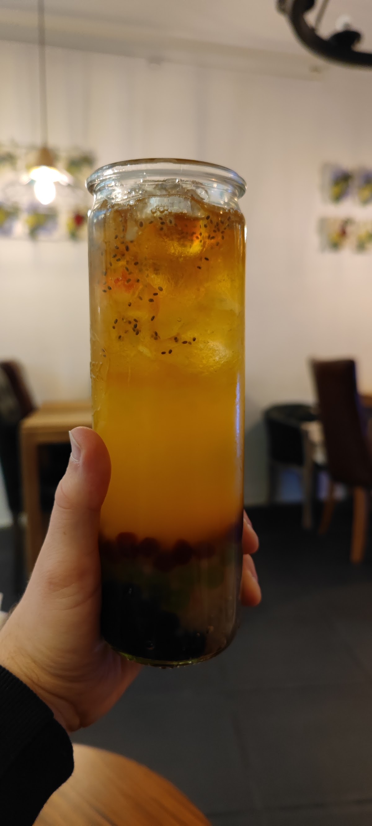 I love this Place. They have Amazing bubble tea out of the range of artificial taste which you mainly get. Also they serve them in glass when you stay in the café. Try the cakes too, i loved them. The atmosphere is comfy and you can just relax while enjoying drinks and food. Totally can recommend this place if you like Boba or want to try it, this will be the best place to do so