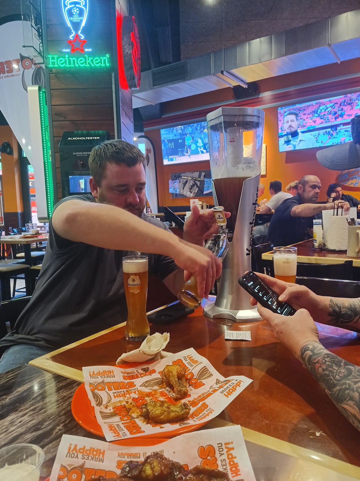 Hooters is one of american fast food restaurants that have been on my sight since forever. Finally I got to experience their food for the first time in Hamburg. Our server was Kristina,and she's a really good server. she gave us a pretty good recommendation and pretty much saved us a lot €€, if she's there just ask for her.