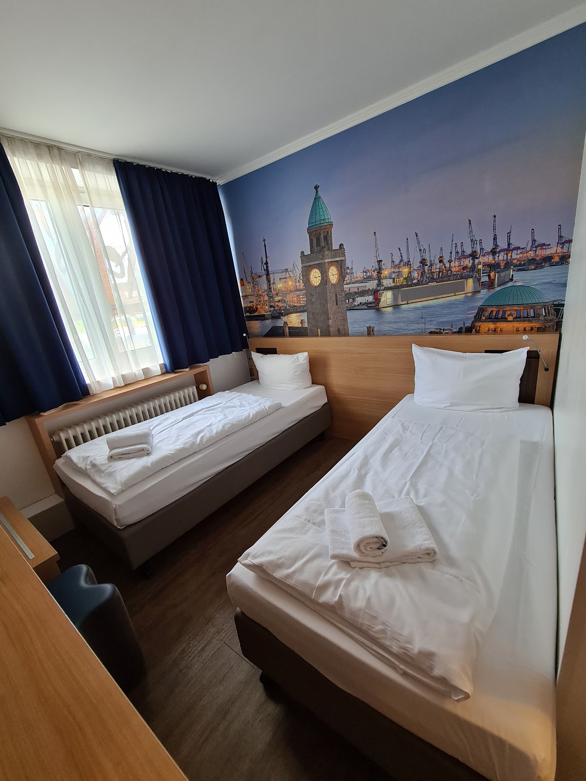 This hotel is located at the legendary Reeperbahn. So that means you're in the party area of Hamburg. If you're room is on the street side in can be a little noisy. The room is good. With a dubbel bed. Bathroom TV and free Wi-Fi. The hotel is located above a bar so some staircases are required. My recommendation is to bring a bag and not a suitcase because the rooms are not very big. But all and all it's a good hotel for youre money. ????