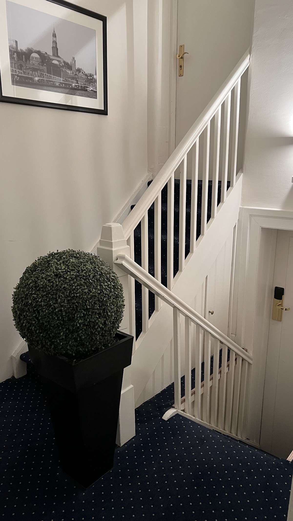 Very nice hotel and nice service. They offered us to choose a room - a small room with a nice street view or a bigger room with a yeard view. The room was clean, with big TV, desk, and 2 armchairs. The bath had a small bathtub. They also have a room with mini-bar that you can use 24/7. Check pit is at 11.