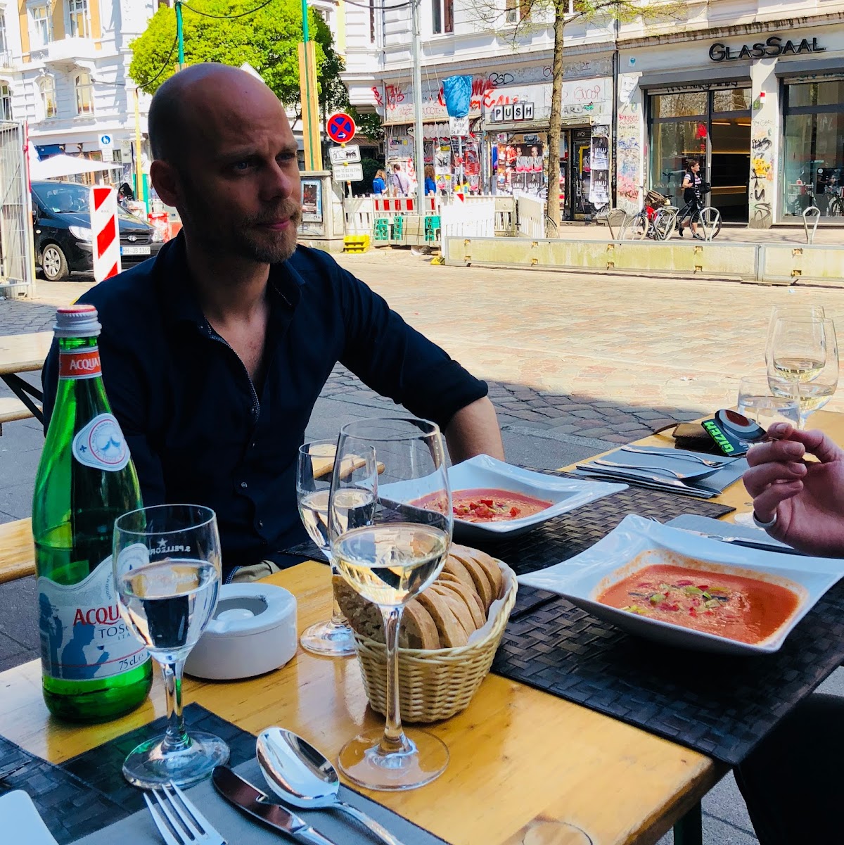 Wir waren die einzigen Gäste, verstehe ich gar nicht. Es war richtig lecker, frischer Trüffel, gut abgeschmeckt, ich finde das viel besser als die anderen Italiener in der Straße, da bekam ich manchmal nur Sahne als Soße.