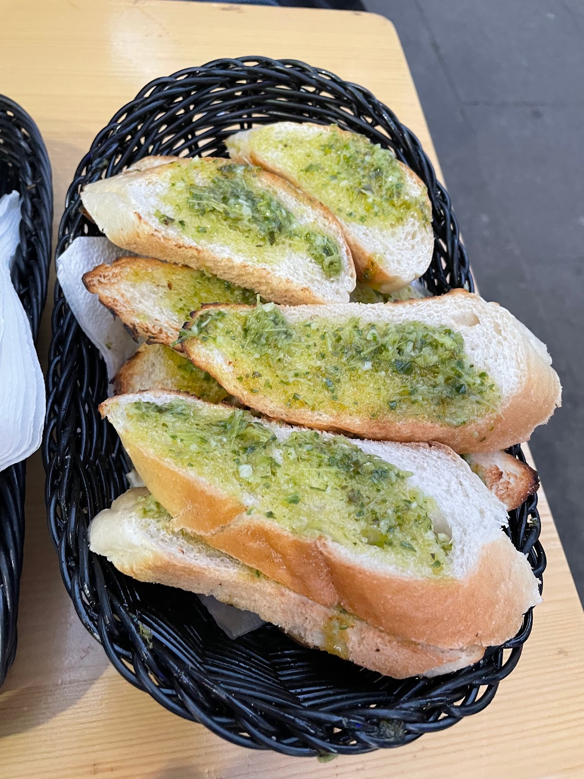 Very fresh seafood dishes. You get garlic bread for free, every main dish comes with fresh green salad, grilled vegetables and potatoes (you can choose between 4 different forms). We had grilled potatoes, chips and cooked potatoes and they were all very good. The staff was very nice. They even offered fish for our dog. We are very satisfied with their service.