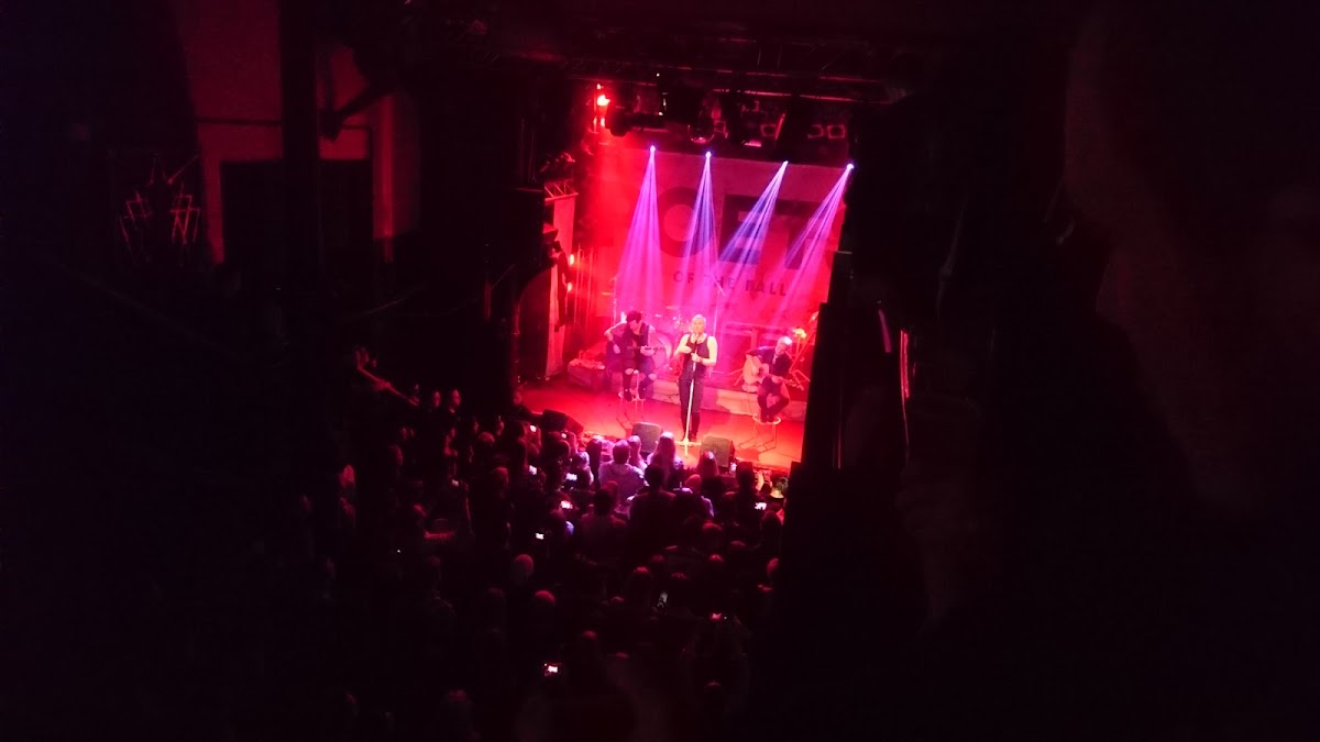 The hall has a standing area with a bar and a balcony with seats (bar stools) and tables. The balcony was open only for the main show.
