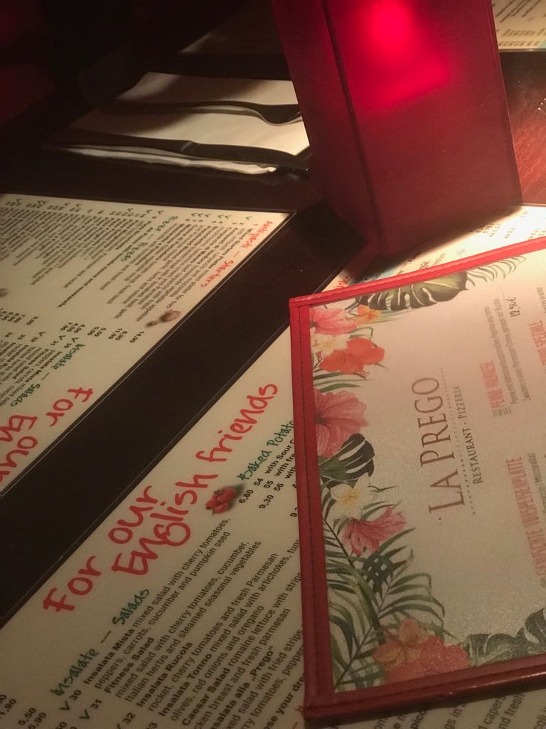 La Prego's food is delicious, the staff is friendly and attentive, and the atmosphere is comfortable and inviting. I've eaten here several times alone and with friends and family and have been beyond pleased every time. The prices are very reasonable, and the menus are all in both German and English (some restaurants "run out" of English menus, and my German isn't that good yet).