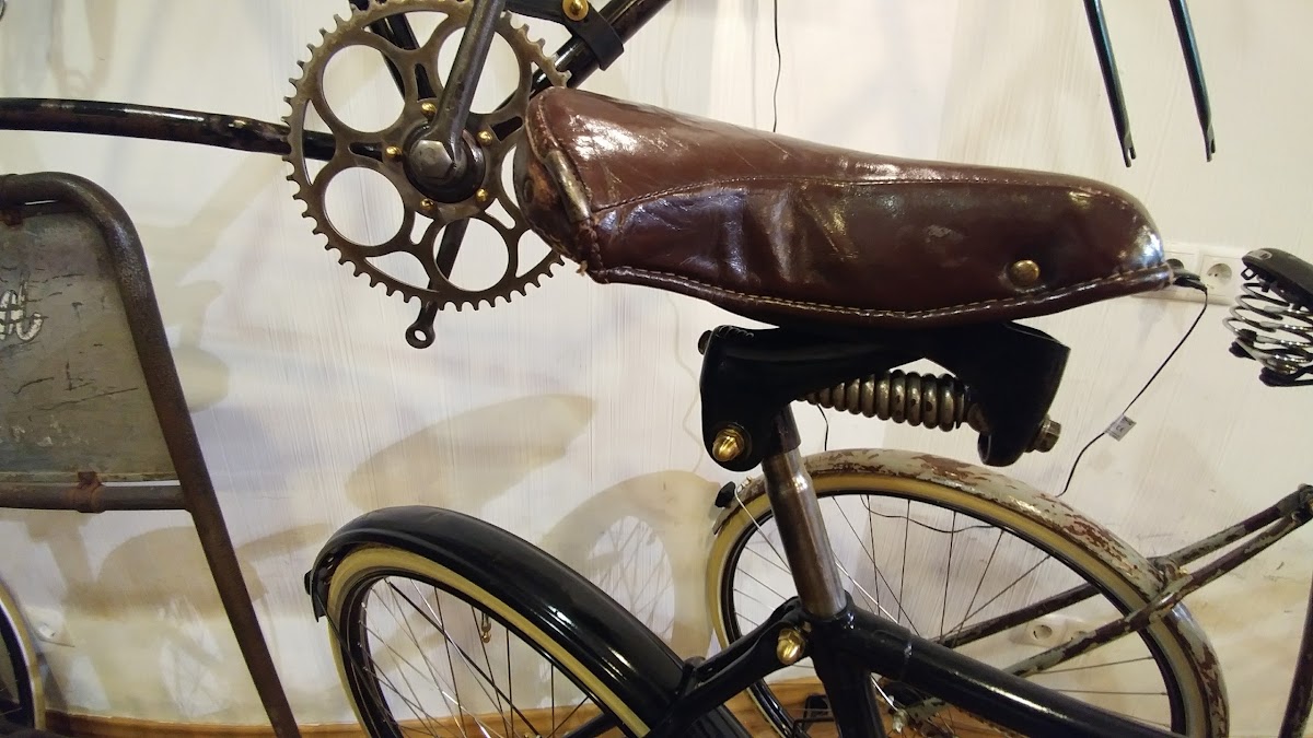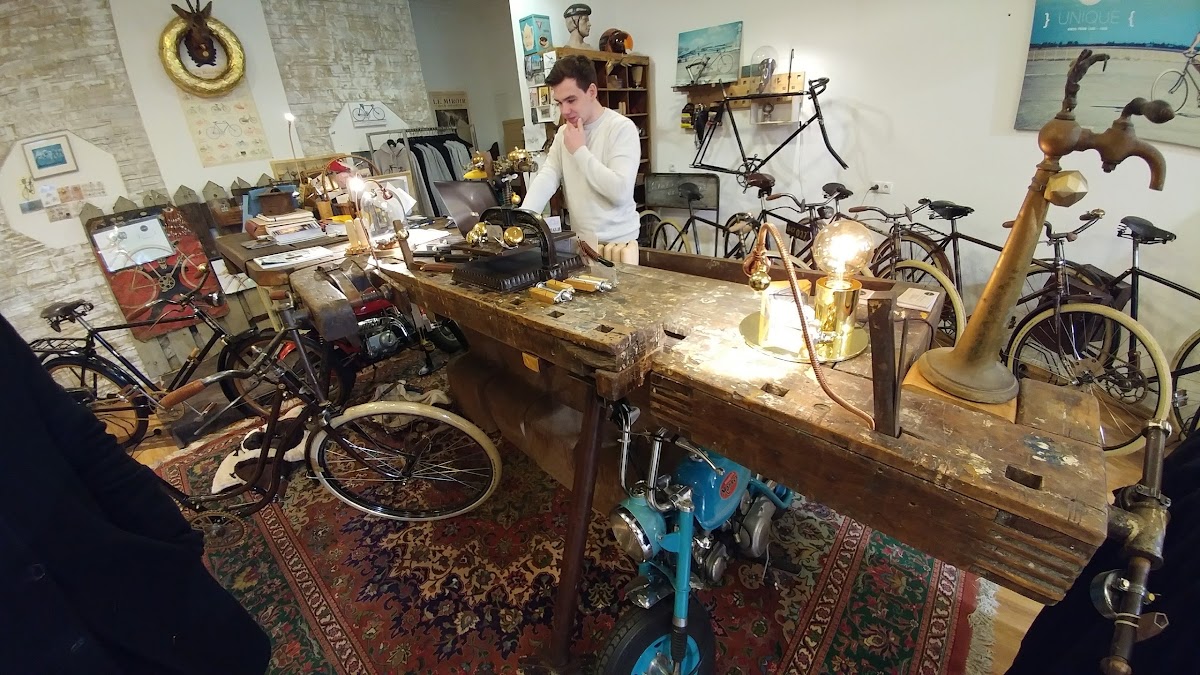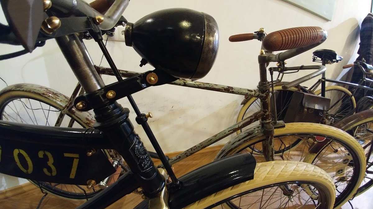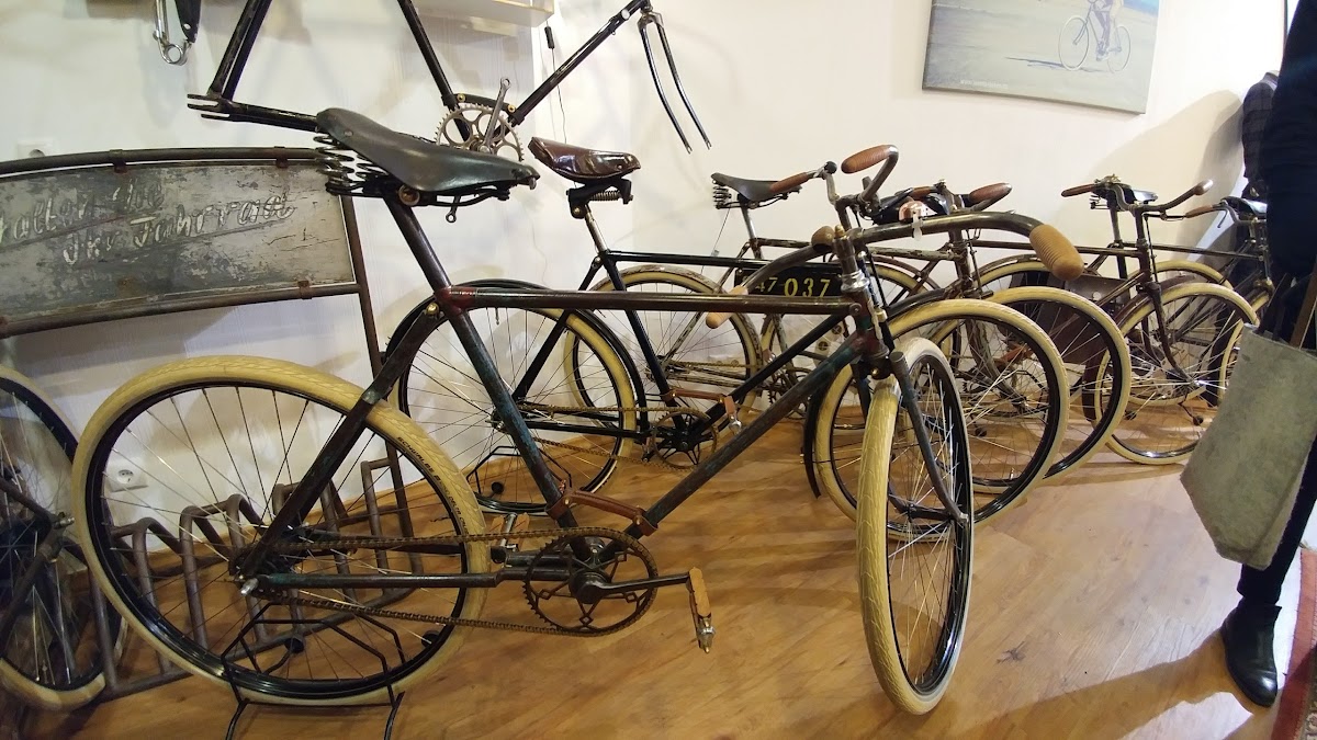 (Translated by Google) A great idea to combine old bikes with a café. Beautiful old restored bicycles with delicious coffee and delicious cakes and pies combined around a fountain with a rotating globe.