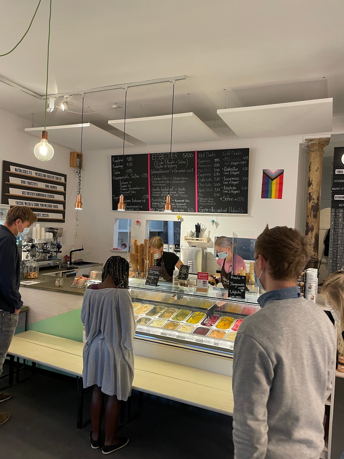 Flavours like strawberry and rosemary, lemon sorbet and basil, mango lassi, chocolate ans salted white chocolate, and franzbrotchen (sort of like cinnamon croissant flavour) we're stand out of the unusual flavours available along with the regulars.