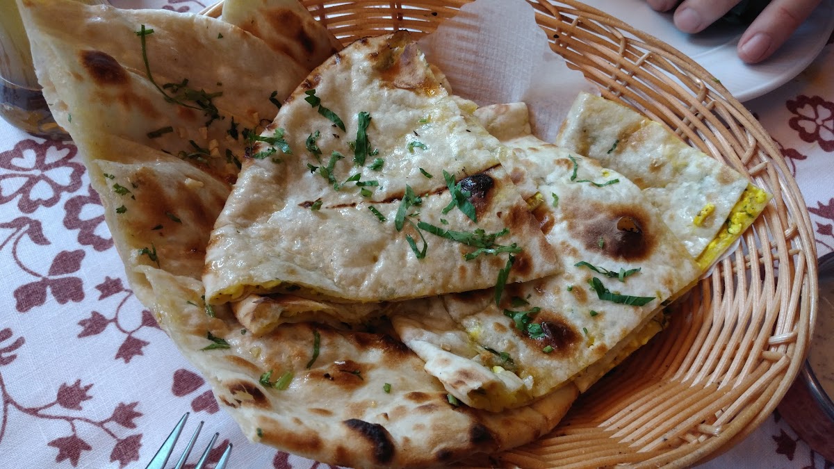 Maharani is an elegant Indian restaurant that has many vegan options. The chefs are from northern India and have a lot of experience in creating unique Indian dishes. We started with a chutney platter: tamarin, mango, chili, and cilantro. It was served with papadam bread seasoned with caraway that is vegan and gluten-free (rice and lentil flour). The presentation is very charming and the atmosphere is comfortable. The inside is decorated with many Indian items and comfortable sitting throughout the restaurant. We had Bindi Masala with unique flavoured okra and peppers in a ginger, tomato, curry, and onion sauce with grated coconut (14.50 euros). The Vegetable Jalfraisi had many vegetables: cauliflower, zucchini, peas, beans, carrot, and ginger (12 euros). All dishes are served with basmati rice that is seasoned with caraway and parsley. The flavour can be regulated to mild, medium, or hot. I loved that our dishes were decorated with star carrots, rose tomatoes and pomegranate.