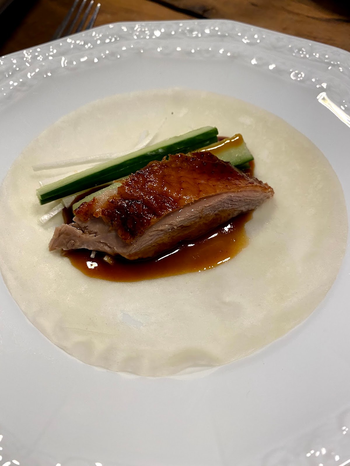 The duck was so incredibly tasty and tender. The ingredients such as leeks, dough sheets, cucumber and sauce were also available in sufficient quantities.
