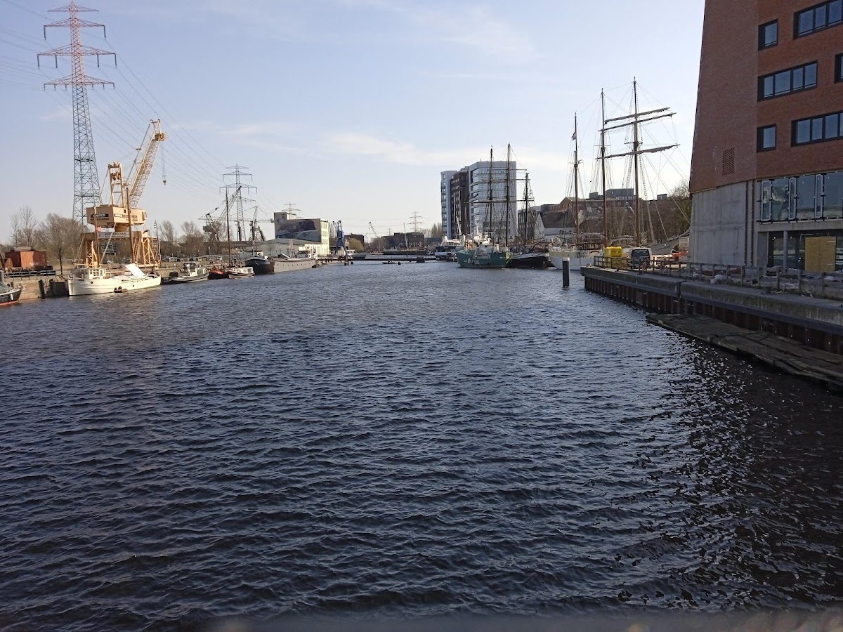 (Translated by Google) Nice place to stay. Always changing ships at the Kanalplatz, festivals such as the Binnenhafenfest or the Christmas market on the ships bring life to the district. And you can see the development of the museum harbor, for example on the new crane at Lotsekai