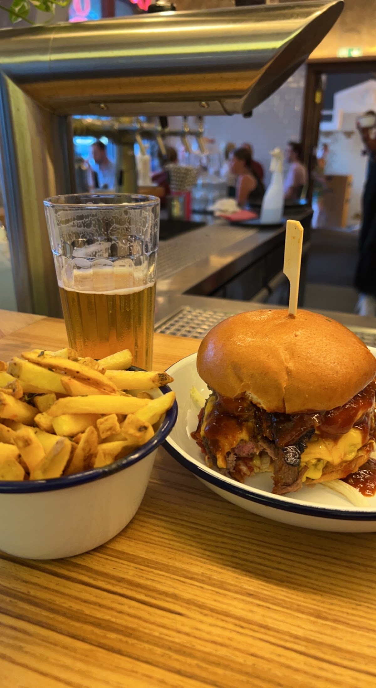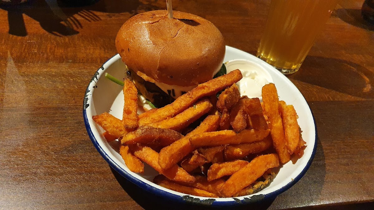 One of the best burgers I have ever eaten. The meat has a great quality and it is really good. You have a great deal of beers, burgers and sauces. The burgers don't come with fries. You can ask for tap water if you want some.