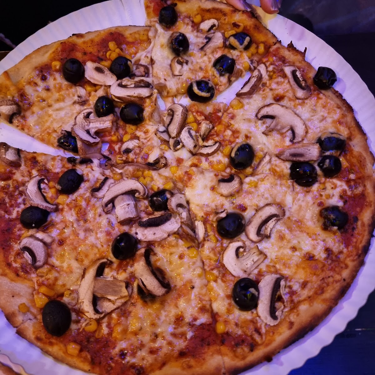 The food was really good. The good part is that the base is good and you add whatever you want to a good base. But the service is not good. They don't have any system and they call you by the ingridiants you added to your pizza????.