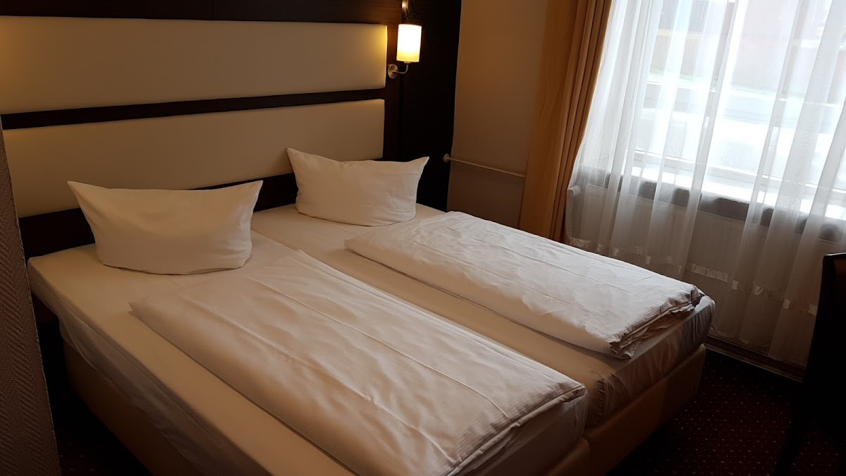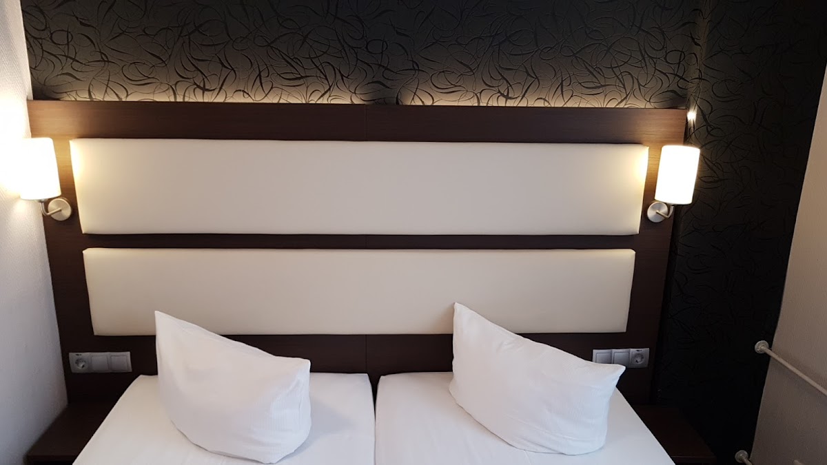 Hotel is located in an industrial area. I stayed for one night. The night was tranquil and quiet. I slept with the window open and had no problems. Room was big and had two beds. The bathroom is very small but the shower was very good. Furniture looked good and new. Breakfast was very good and had a great choice. Staff was nice but very reserved. I enjoyed my stay and can recommend the hotel.