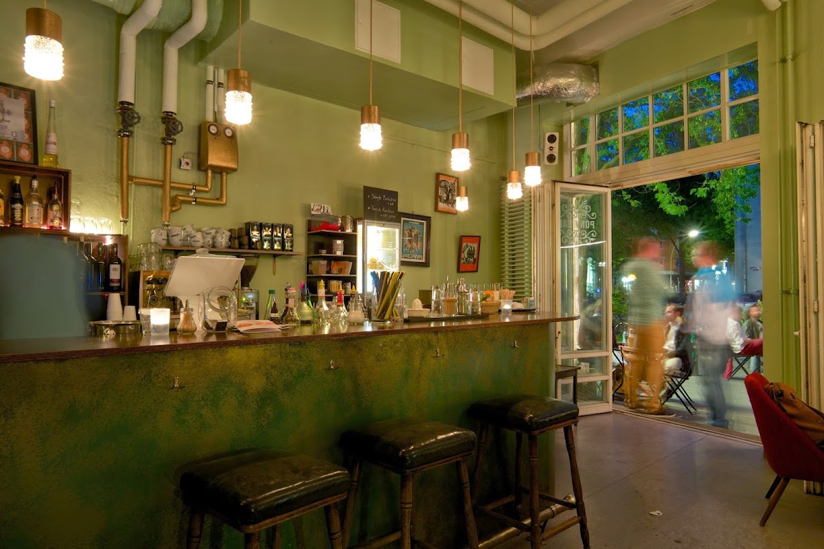 A really nice bar and cafe, great interior and location. This is a proper hipster cafe and bar, the place is full of guys and girls sitting on laptops and not ordering anything allday. Great prices and selection, food wise there's pastry base dishes and cheesecakes. If your not a fan of hipsters I would seriously AVOID this place.