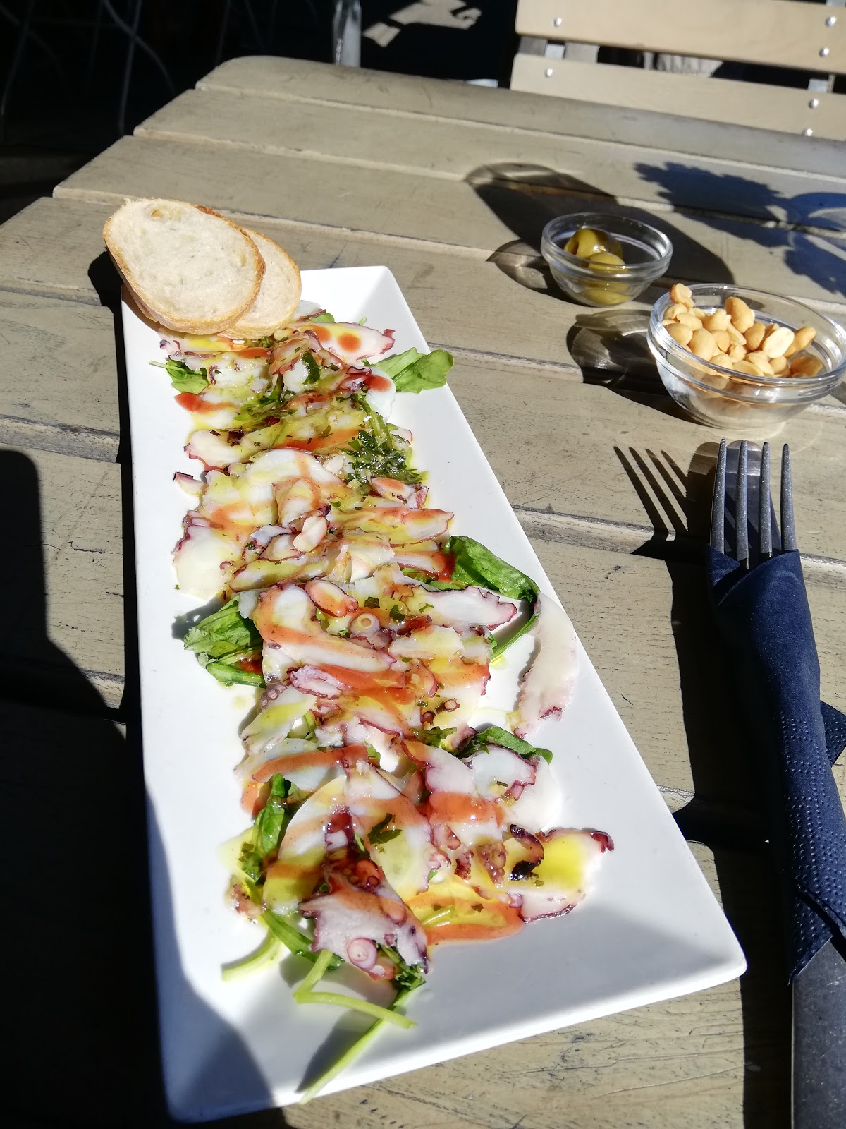 I have been here today and liked everything. Very friendly Service, I guess it was maybe owner of the place, good apperitiv recommendation, delicious octopus carpaccio and warm sunny terrace with the Hafen view and totally relaxing atmosphere. It was definitely good!